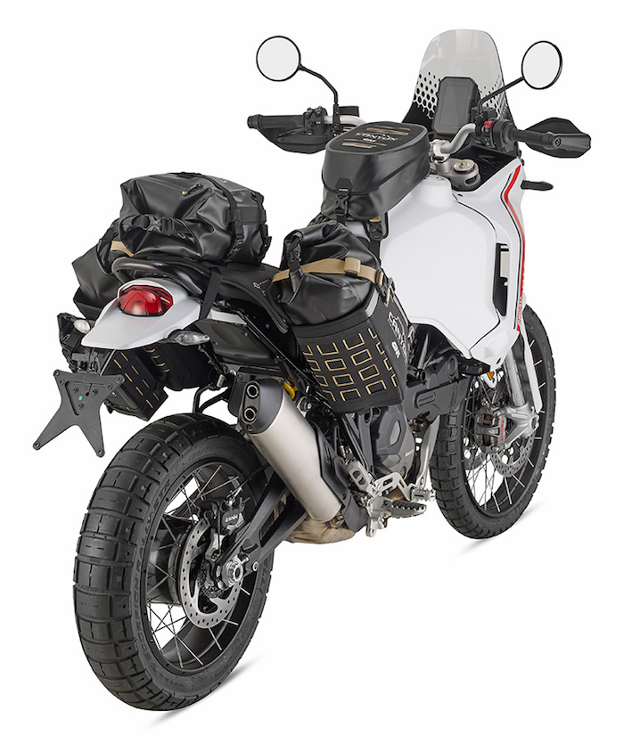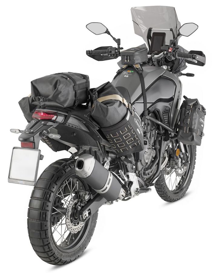 Это многофункциональное универсальное крепление на заднюю часть мотоцикла позволяет установить водонепроницаемые сумки, входящие в комплект, на 16л (2шт) по бокам и на 12л (1шт) по центру, оно подходит на большинство мотоциклов класса эндуро.